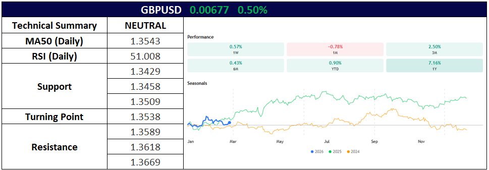GBP/USD menguat mendekati level 1.3600 setelah inflasi Inggris turun lebih besar dari perkiraan, meningkatkan peluang pemangkasan suku bunga oleh Bank of England. Pelemahan dolar AS juga menjadi faktor tambahan yang mendukung penguatan pound. Meski demikian, pelaku pasar tetap berhati-hati karena inflasi sektor jasa masih relatif tinggi.