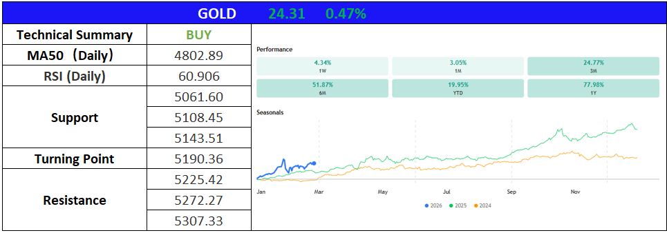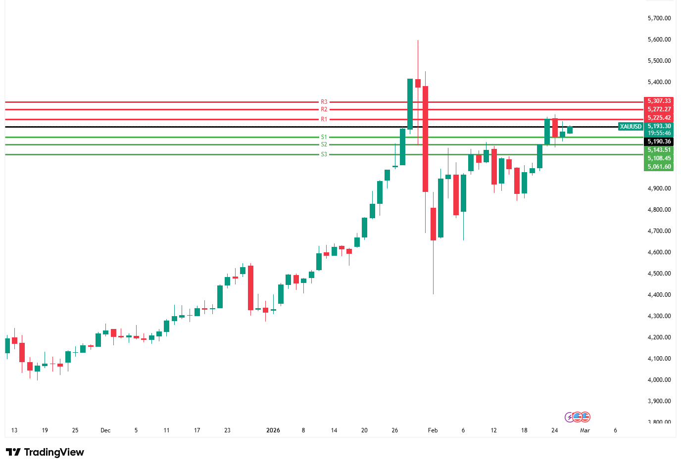 Harga emas kembali menguat setelah koreksi sebelumnya, didorong ketidakpastian kebijakan tarif impor AS serta penantian perundingan nuklir AS–Iran di Jenewa. Pelemahan dolar AS turut meningkatkan daya tarik emas sebagai aset safe haven. Meski tren jangka pendek masih cenderung bullish, sinyal teknikal menunjukkan potensi konsolidasi dengan area support di sekitar MA50.
