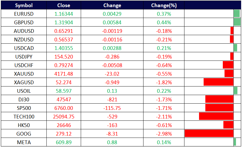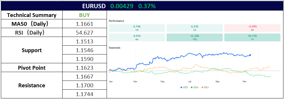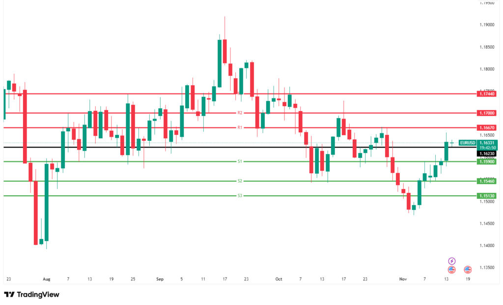 Euro (EUR) melonjak 0,38% dan menembus level 1.1650, mencapai level tertinggi dua minggu pada hari Kamis. Penguatan Euro ini didorong oleh pelemahan Dolar AS (DXY) yang turun 0,34%, meskipun probabilitas pemangkasan suku bunga Fed (rate cut) di Desember turun menjadi 50%. Investor tampak lebih fokus pada data ekonomi AS yang suram daripada komentar hawkish pejabat Fed, sementara kenaikan Euro juga didukung oleh data Produksi Industri zona Euro yang sedikit membaik.