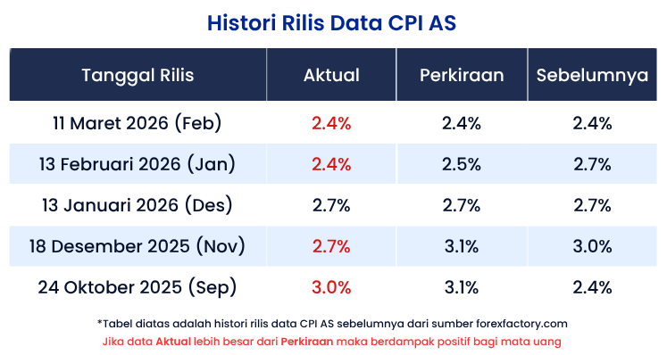 • Indeks Harga Konsumen (CPI AS) rilis pada Jumat, 10 April 2026
