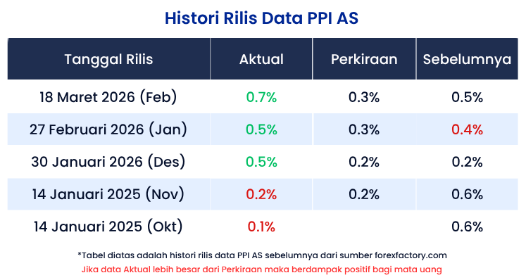 • Indeks Harga Produsen (PPI AS) akan rilis pada Rabu, 14 April 2026