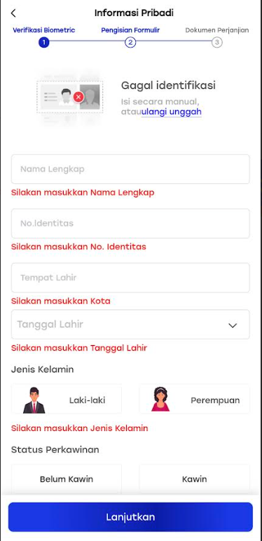 Setelah verifikasi wajah, kamu akan masuk ke tahap pengisian formulir data diri.