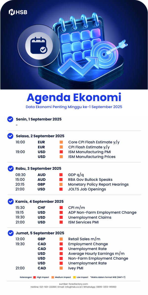 Mengingat padatnya agenda ekonomi minggu pertama September 2025 dengan potensi volatilitas tinggi, penting bagi setiap trader untuk memiliki strategi dan manajemen risiko yang cermat. Data-data penting seperti inflasi dan ketenagakerjaan akan menjadi pemicu utama pergerakan pasar. Oleh karena itu, persiapan dan pemantauan yang ketat adalah kunci untuk mengoptimalkan peluang di tengah gejolak ini.
