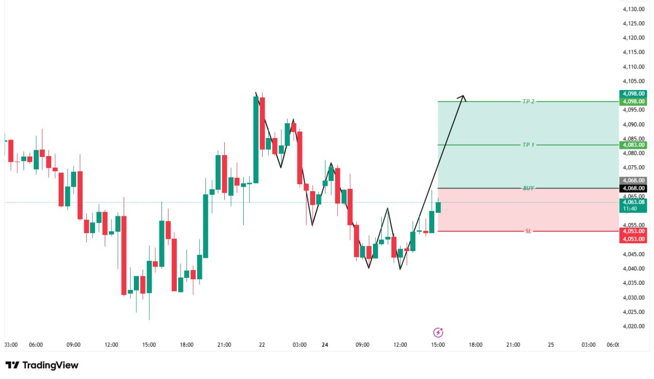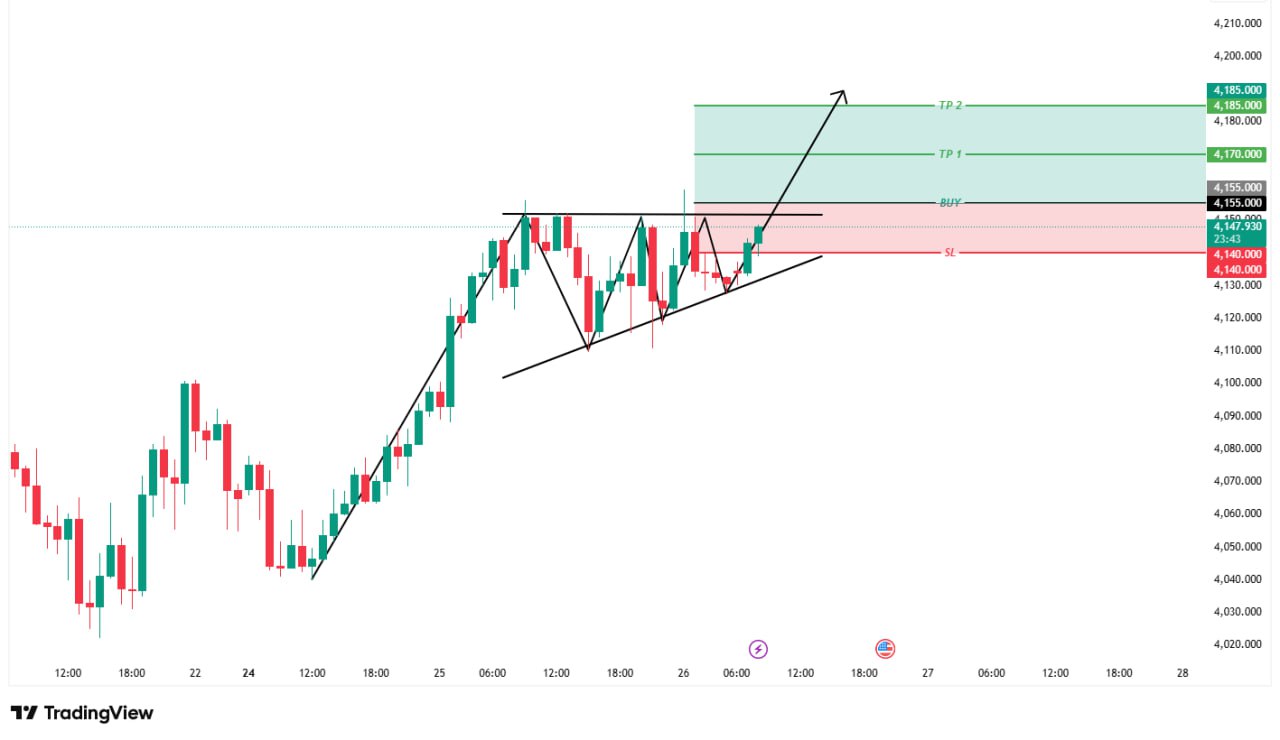 Pada timeframe H1, XAUUSD sebelumnya bergerak sideways dan terjadi rally sampai terjadi breakout di area resistance 4132. Apabila terjadi valid retest pada resistance tersebut setelah terjadinya breakout maka XAUUSD berpotensi untuk melanjutkan kenaikannya sehingga terdapat peluang untuk melakukan BUY dengan risk to reward 1:2.