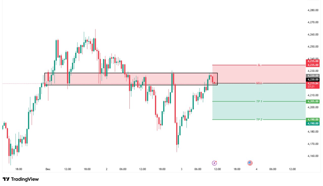 Strategi utama yang direkomendasikan adalah mencari peluang BUY selama harga mampu bertahan di atas area support kunci 4.200 – 4.210, dengan target kenaikan menuju resistensi di 4.240 – 4.250. Namun, trader perlu waspada jika harga gagal menembus 4.230 dan berbalik turun di bawah 4.210, karena kondisi tersebut berpotensi memicu koreksi lanjutan menuju area pertahanan yang lebih kuat di 4.180.