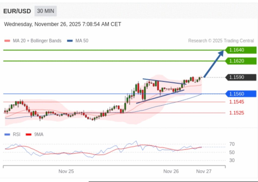 Selain geopolitik, pergerakan Euro hari ini juga dipengaruhi oleh faktor eksternal lain meski dalam skala lebih kecil, seperti dampak dari Anggaran Inggris (UK Budget). Namun, fokus utama pasar tetap pada perkembangan di Eropa Timur dan data ekonomi AS yang mempengaruhi selisih suku bunga (rate differentials).
