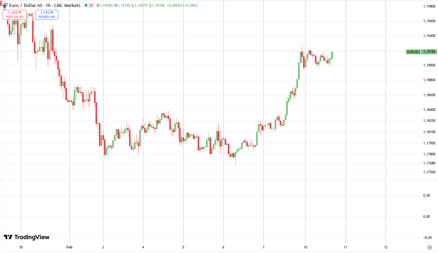 Dari sisi Eropa, Euro mendapatkan dukungan dari pernyataan Presiden ECB, Christine Lagarde, yang tetap percaya diri bahwa inflasi di kawasan tersebut akan stabil di angka 2% dalam jangka menengah. Kebijakan suku bunga yang diprediksi akan tetap stabil dalam beberapa bulan ke depan memberikan kepastian bagi para trader, sehingga Euro mampu mempertahankan posisinya di level tertinggi dalam satu minggu terakhir di tengah kondisi pasar yang sedang bergairah (favourable risk sentiment).