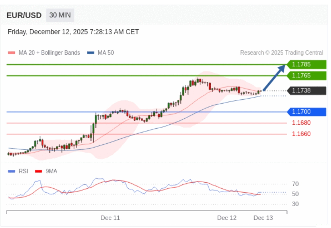 Berdasarkan grafik 30 Menit, struktur teknikal menunjukkan momentum Bullish yang solid setelah harga berhasil bertahan di atas level psikologis 1.1700.