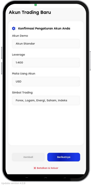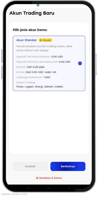 - Pilih ‘Akun Demo’ dan klik ‘Berikutnya’.